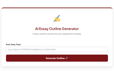 Use our free AI Essay Outline Generator to instantly create a complete essay outline for assignments, exams, reports, paragraphs, and academic writing. Enter your topic → get a structured outline within seconds.